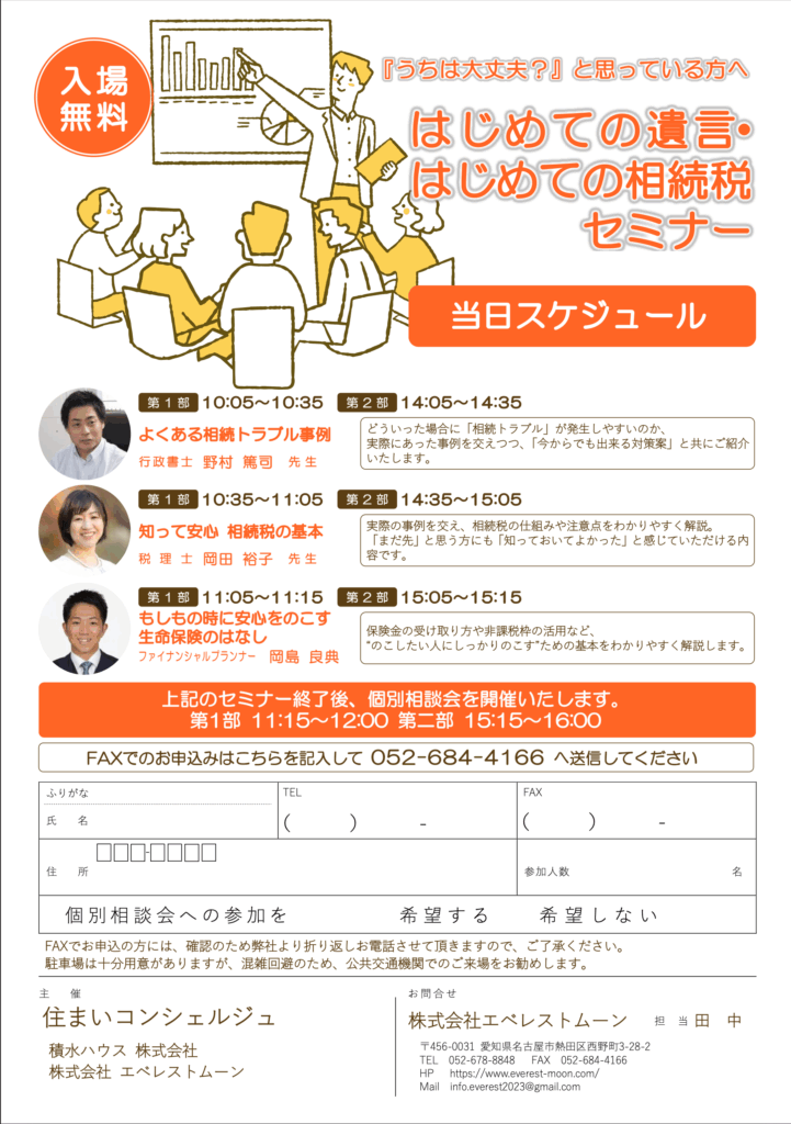 方法② メールでのお申し込み info.everest2023@gmail.com 「相続セミナー参加希望」とご連絡ください
